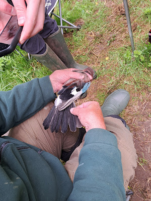 We finished on 25 birds, including just 3 juveniles (birds fledged recently) and 1 'control' bird (a bird not ringed by our group) and we await details of this control: a Reed Warbler.